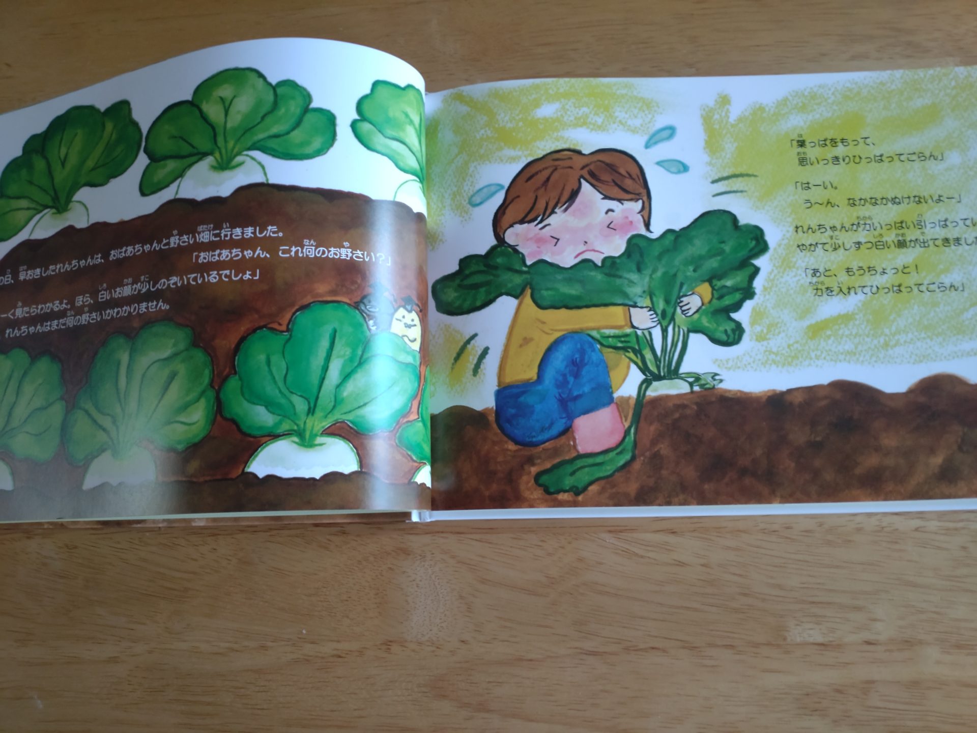 読み聞かせのあとは、大根の成長を記録した動画の視聴と絵本に描かれている