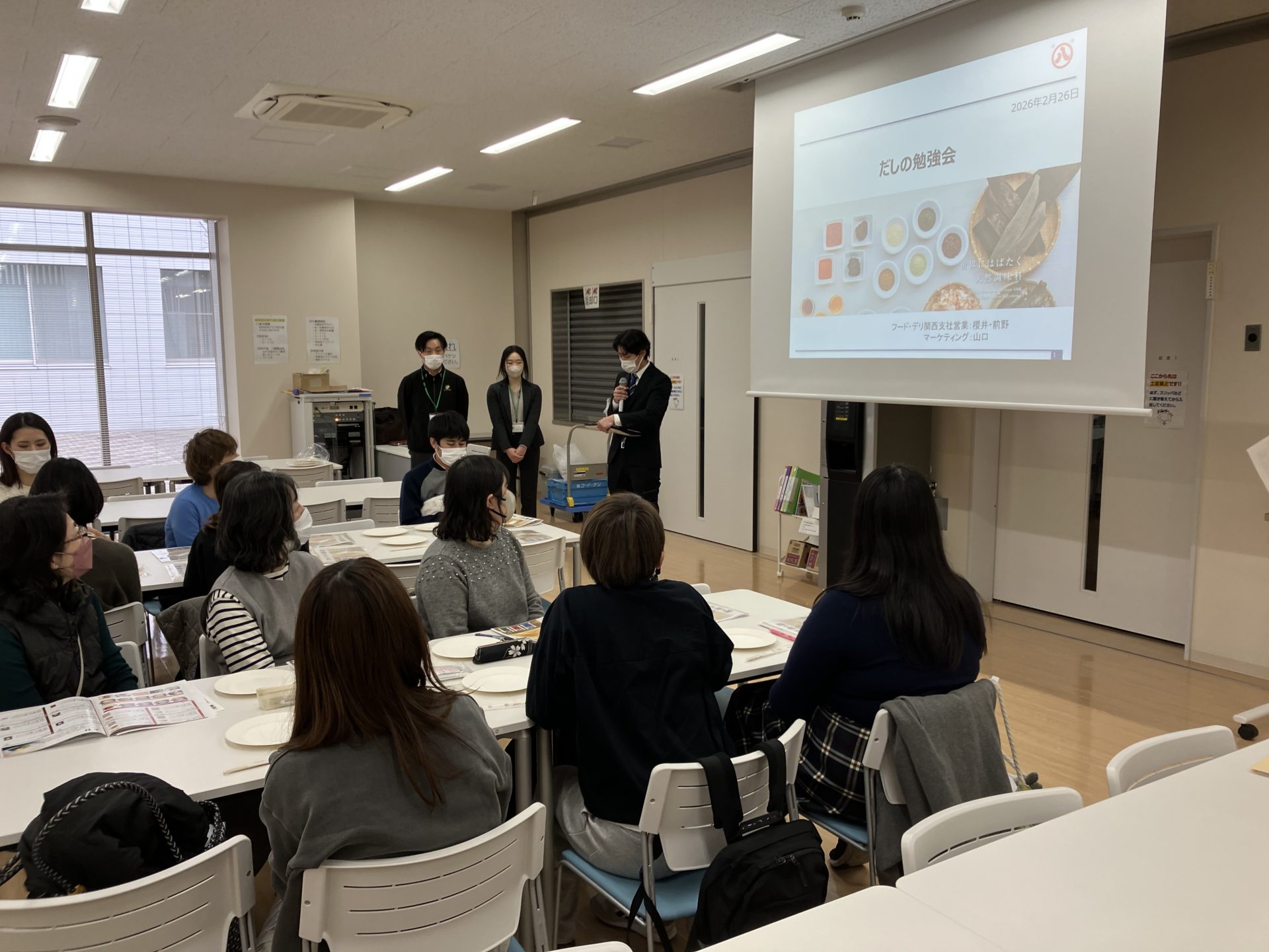 今回は会員からご要望がありました出汁の取り方について業者(フード・デリ)様からの講義と実演です。