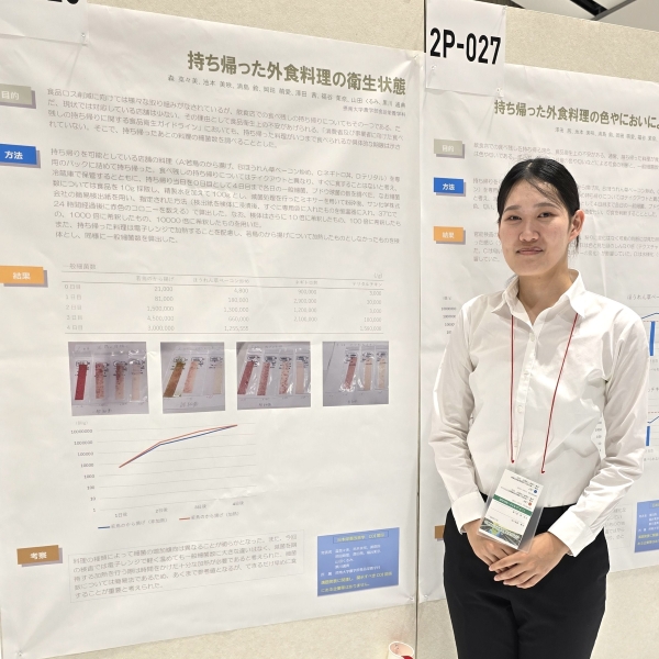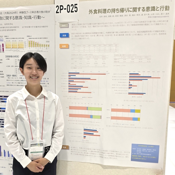 日本栄養改善学会では、7名のゼミ生全員が外食料理の持ち帰りに関する調査研究の成果を発表しました。