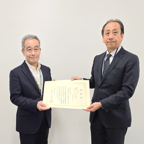 残念ながら授賞式では管理栄養士国家試験直前ということもあって学生の参加がかないませんでしたが、代わって黒川教授が福原総括農政推進官から表彰状をいただきました。